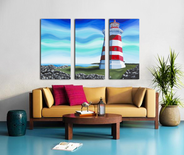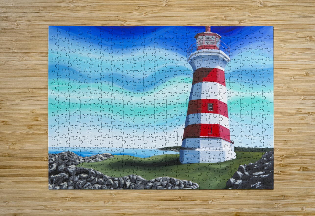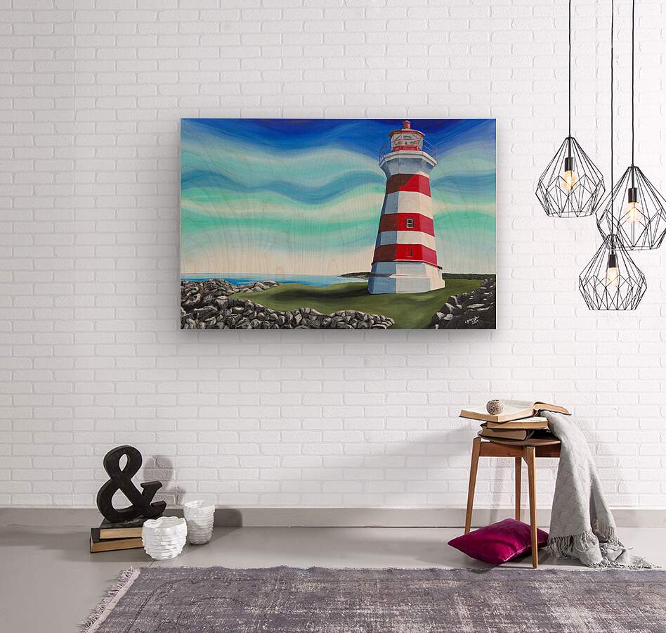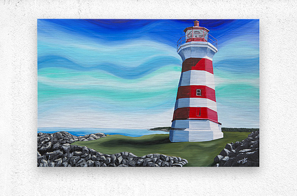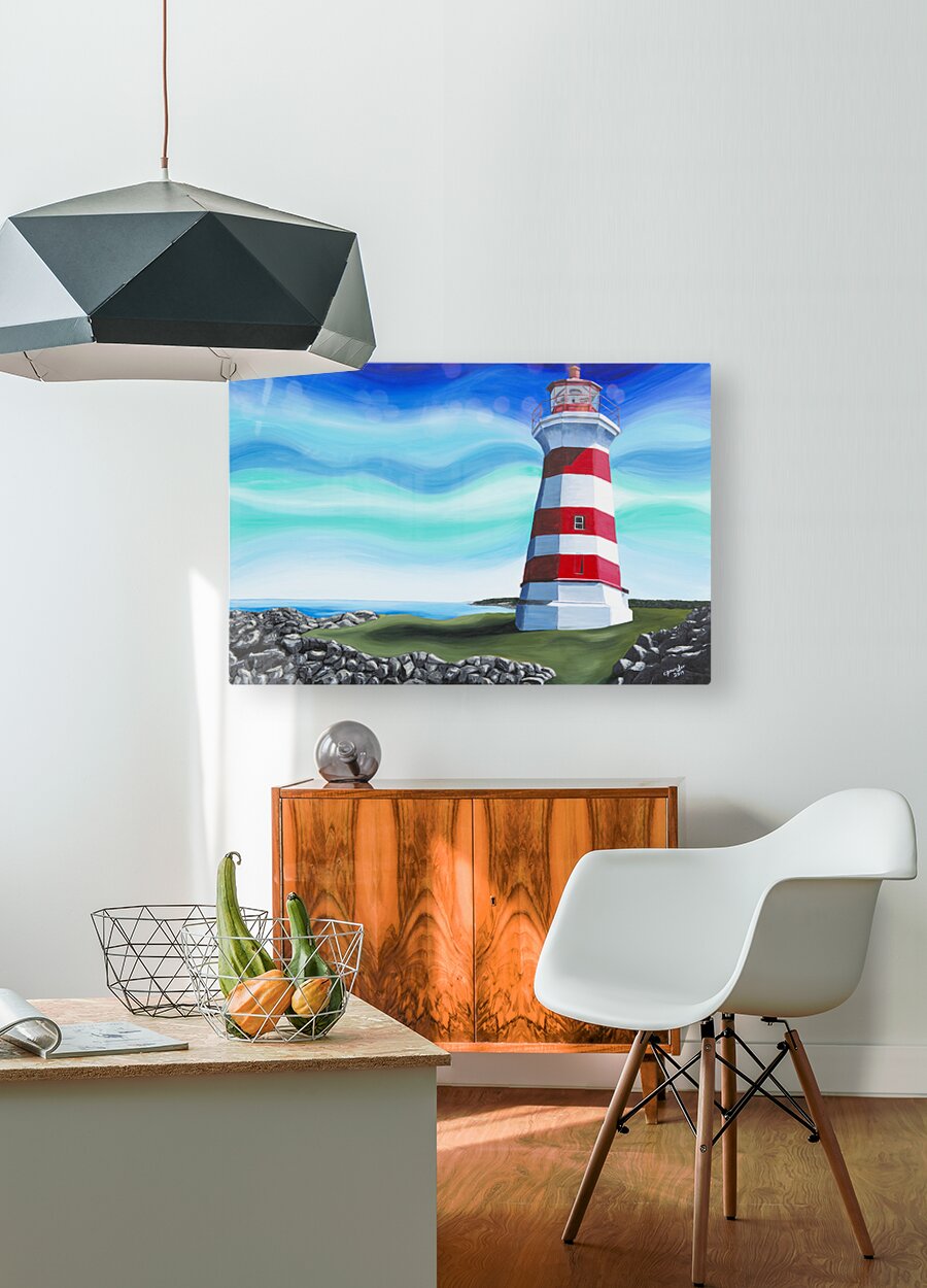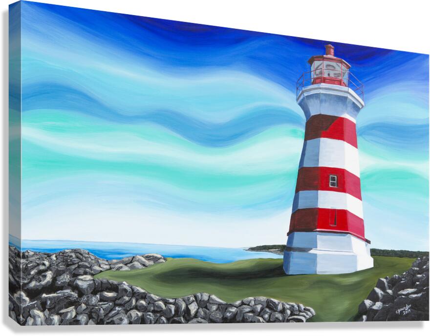 Based on Brier Island Lighthouse aka Western Light, this is the most westerly point in all Nova Scotia. The lighthouse marks the spot where the Bay of Fundy officially begins and is the third oldest lighthouse in Nova Scotia. The waters south of here are the Gulf of Maine and the waters north are the Bay of Fundy. Painted with a whimsical twist, this is one of Nova Scotia’s best known lighthouses.