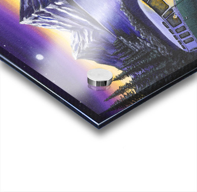 Printed to the edge - Ready to hang - provided with 4 premium polished aluminum stand off ( wall screws and mounting hardware provided )