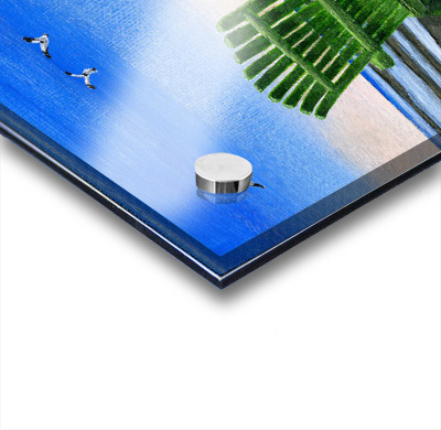 Printed to the edge - Ready to hang - provided with 4 premium polished aluminum stand off ( wall screws and mounting hardware provided )