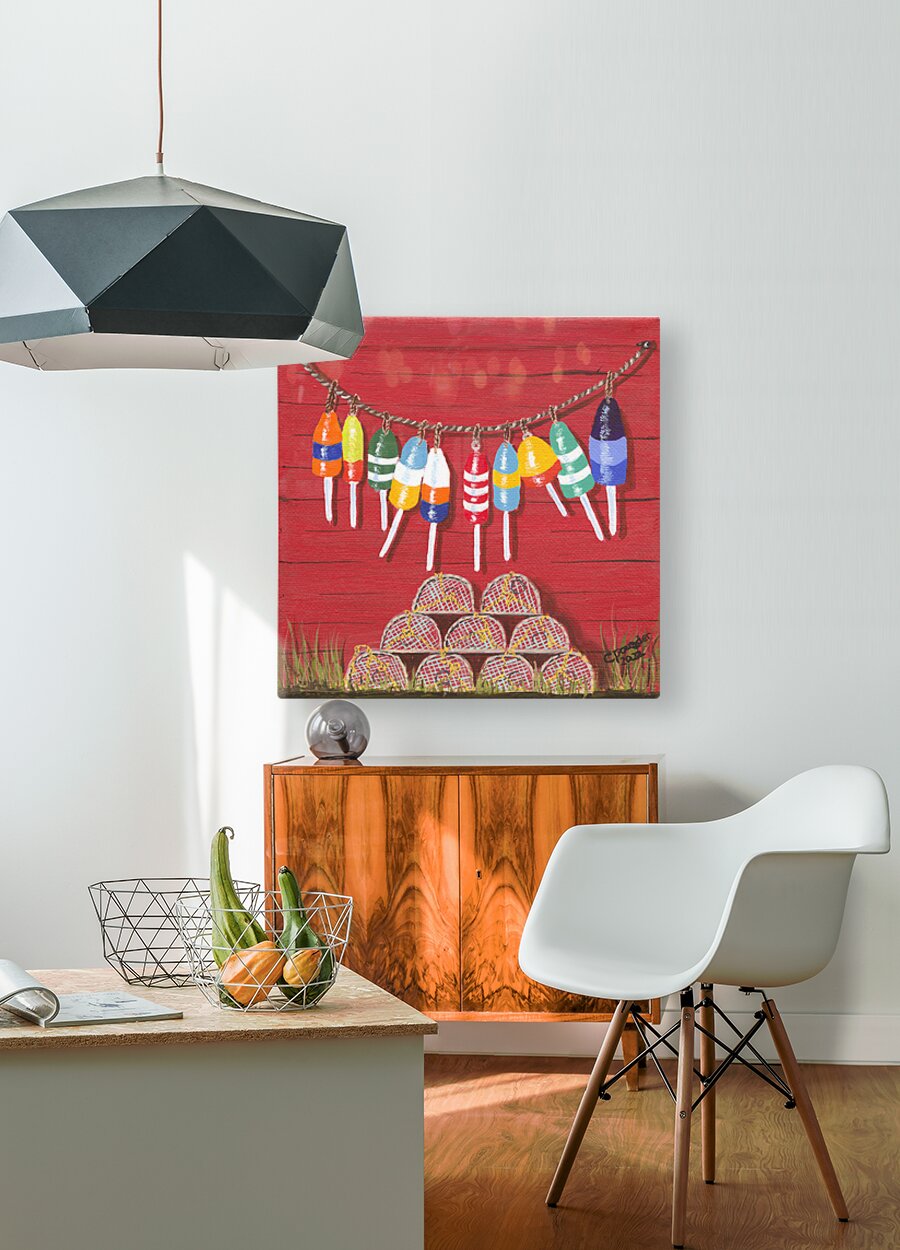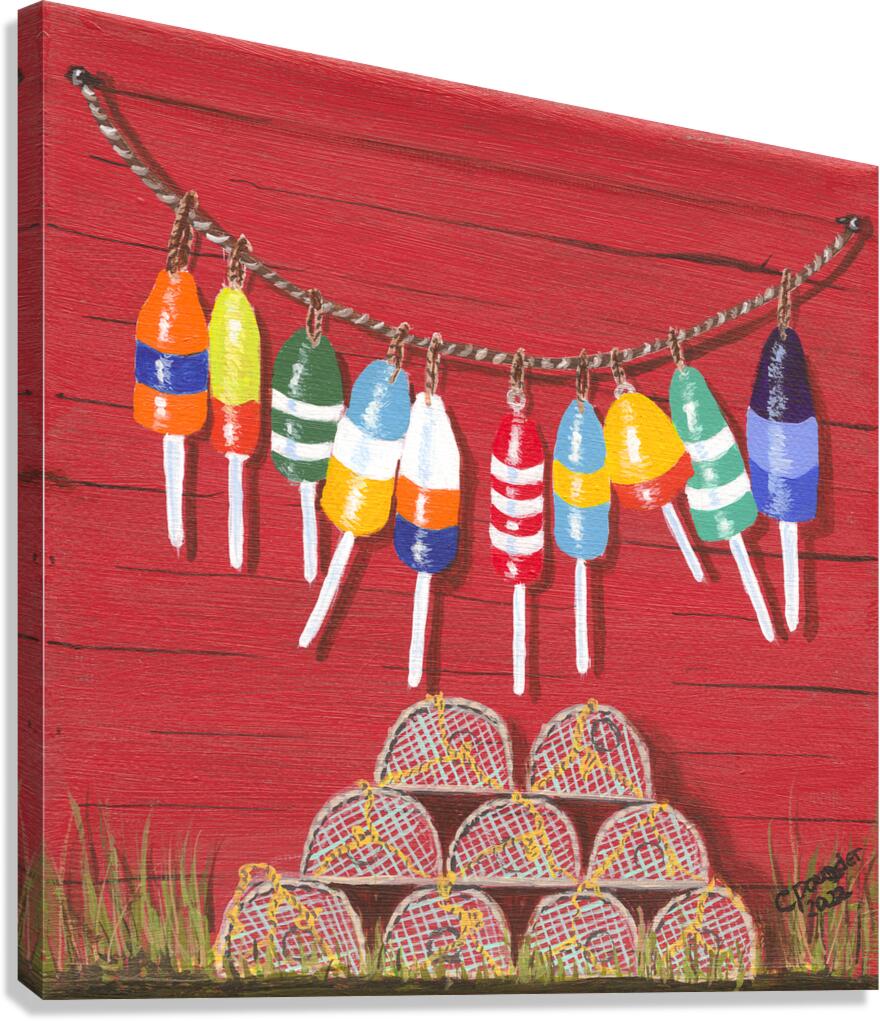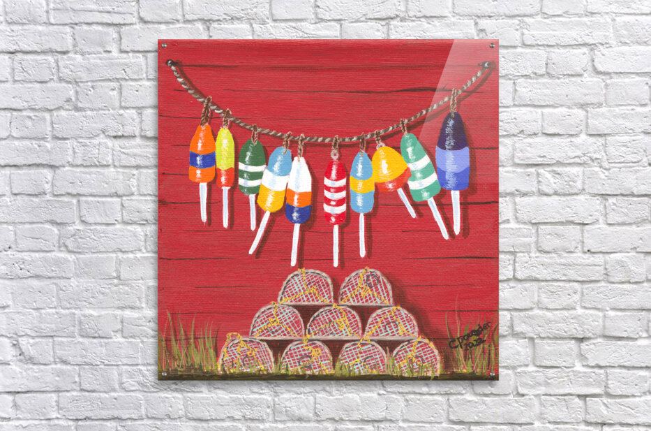 These little paintings were inspired by the abundance of brightly coloured lobster fishing buoys found the length and breadth of Nova Scotia and the Maritime Provinces of Atlantic Canada! Each painting has it’s own name but they are collectively, and simply, known as The Buoys, most original!