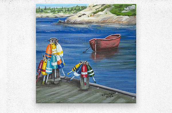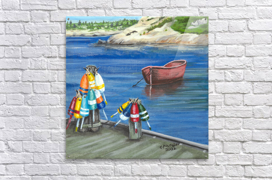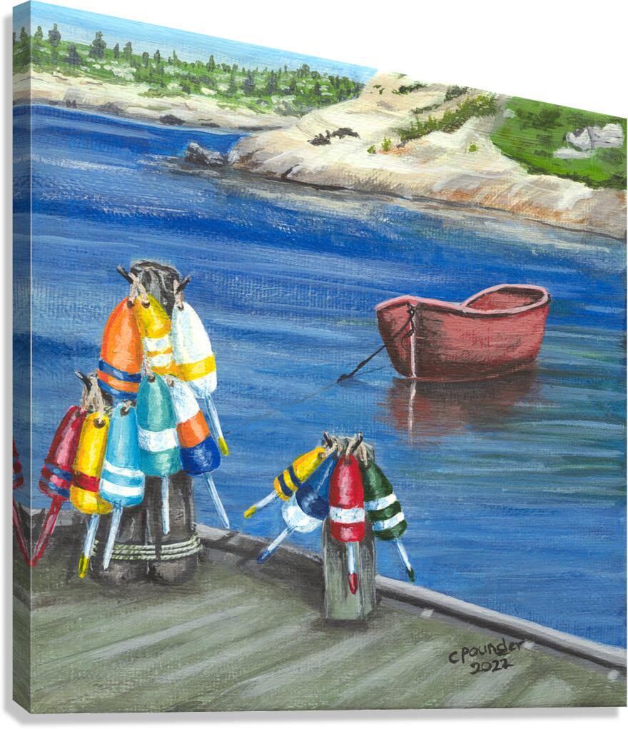 These little paintings were inspired by the abundance of brightly coloured lobster fishing buoys found the length and breadth of Nova Scotia and the Maritime Provinces of Atlantic Canada! Each painting has it’s own name but they are collectively, and simply, known as The Buoys, most original!