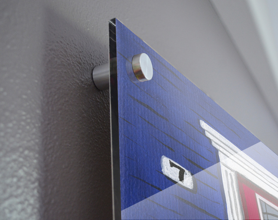 Printed to the edge - Ready to hang - provided with 4 premium polished aluminum stand off ( wall screws and mounting hardware provided )