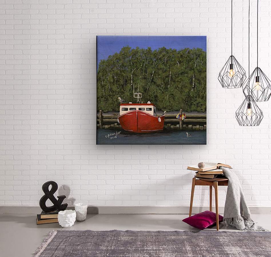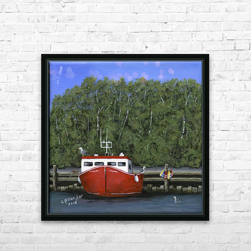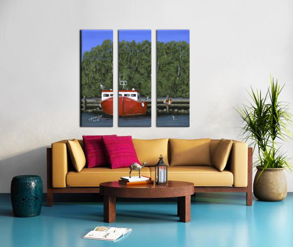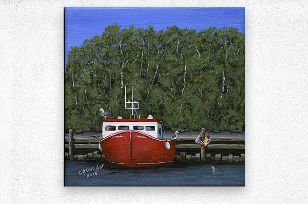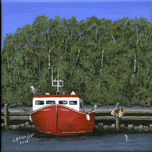 ‘Seas the Day’ was inspired by the local fishing boat harbours around the North Shore area of Nova Scotia. This scene is loosely based on the boats in the Barrachois Harbour near Tatamagouche, a very pretty, vibrant village situated on the Northumberland Straight.