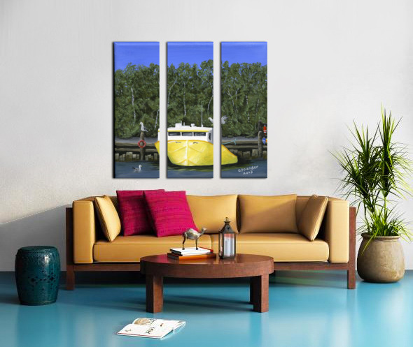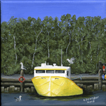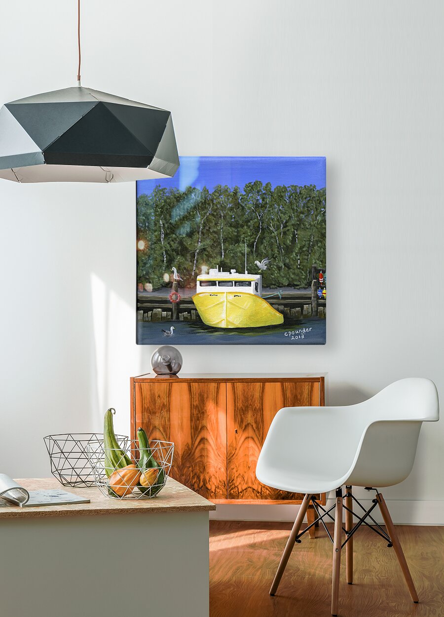 ‘Seas the Day’ was inspired by the local fishing boat harbours around the North Shore area of Nova Scotia. This scene is loosely based on the boats in the Barrachois Harbour near Tatamagouche, a very pretty, vibrant village situated on the Northumberland Straight.