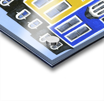 Printed to the edge - Ready to hang - provided with 4 premium polished aluminum stand off ( wall screws and mounting hardware provided )