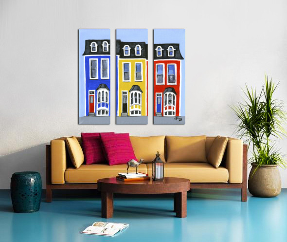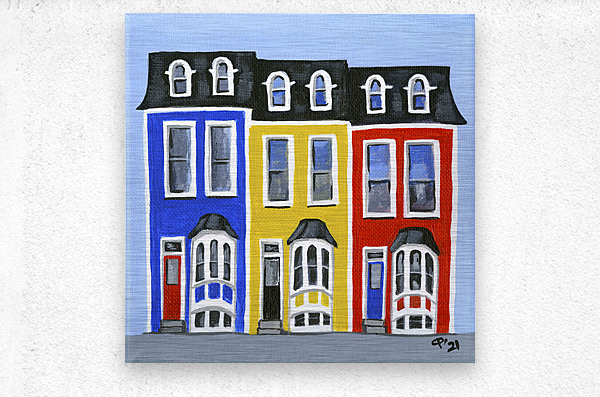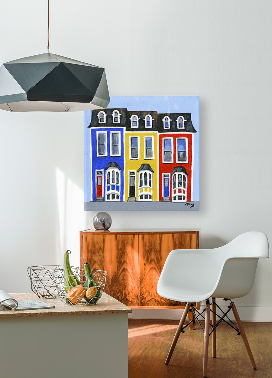 These paintings were inspired by the beautiful candy coloured row houses of Newfoundland! It is said that fishermen returning home were able to find their bearings based on the bright colours of the houses on shore. Of course, I painted them in my own style with a whimsical twist!