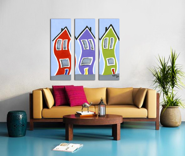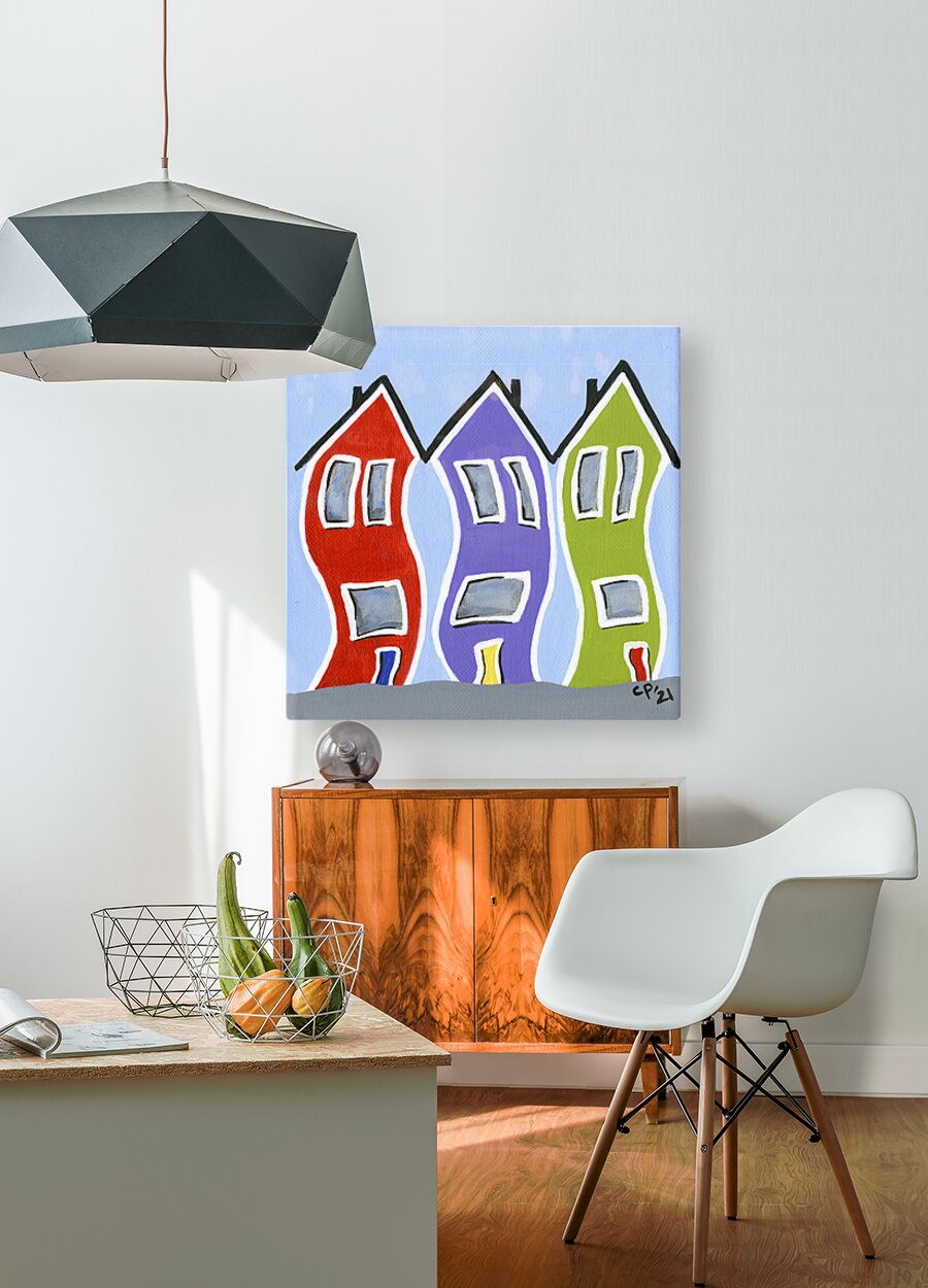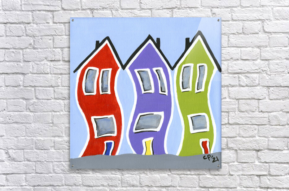 These paintings were inspired by the beautiful candy coloured row houses of Newfoundland! It is said that fishermen returning home were able to find their bearings based on the bright colours of the houses on shore. Of course, I painted them in my own style with a whimsical twist!