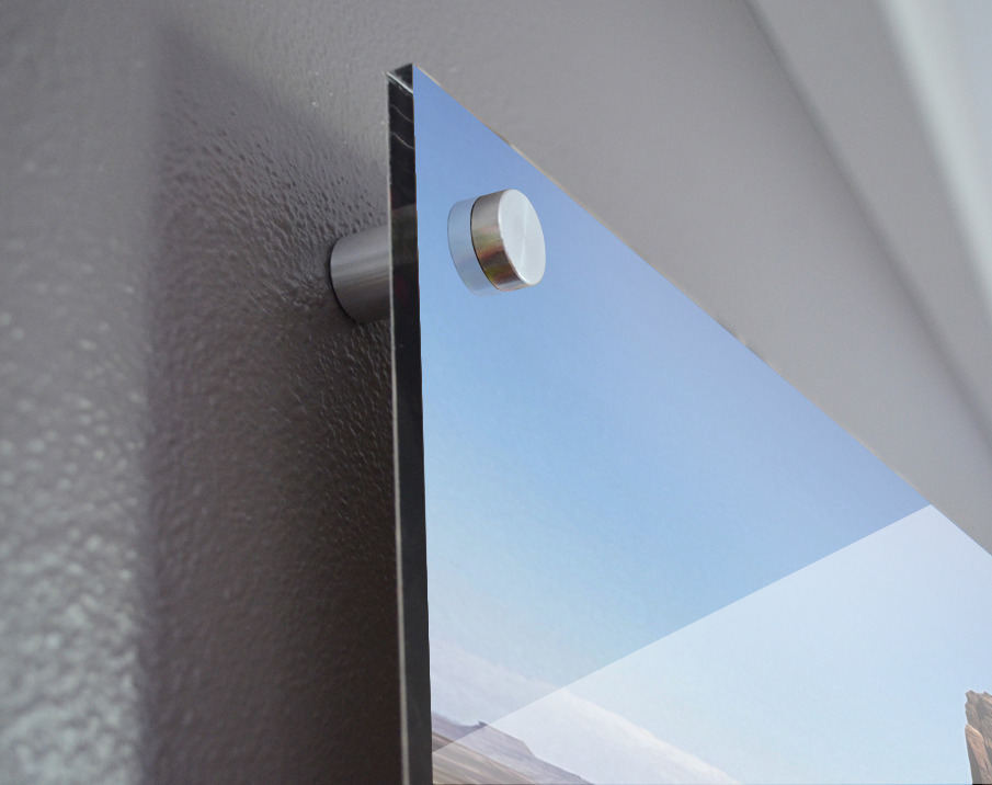 Printed to the edge - Ready to hang - provided with 4 premium polished aluminum stand off ( wall screws and mounting hardware provided )