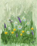 Buttercups, Daisies, and Purple Vetch freely invade our yard every year! Someone else is enjoying themselves among the Pretty Wild Things!